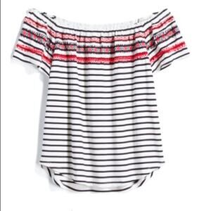 Stitch Fix THML Mirah Off-The-Shoulder Embroidered Cotton Top Blouse // S