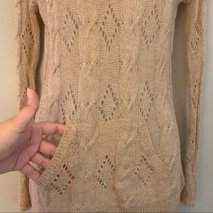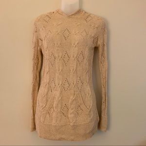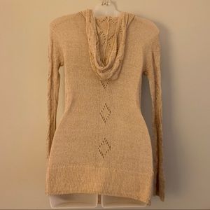 Tan loose weave knit sweater with hood. Perfect for summer and layering in fall. Used but good condition.