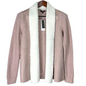 Stitch Fix Womens Faux Fur Lined Open Front Cardigan Sweater Jacket Pink White M