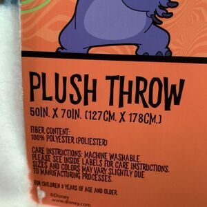 NWT Stitch Halloween blanket featuring stitch, dressed as a witch, a mummy, and a pumpkin with the words gimme candy on the way background.