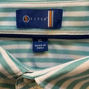 Stitch Golf Green and White Striped Three Button Short Sleeve Polo Size XL