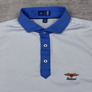 Stitch Golf Polo Shirt Mens M Blue Striped Baltusrol Logo Performance Preppy EUC