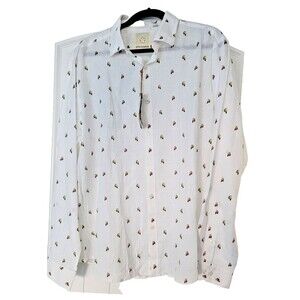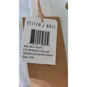 Stitch Note Men's Long Sleeve Vespa Print Linen/Cotton Shirt XXL New w tags