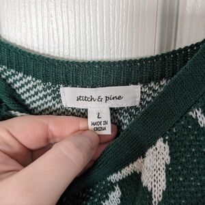 Women, Woman, Women's, Size L, Size Large, Comfy, Comfortable, Dress, Spaghetti Straps, Tank Dress, Tank Top Dress, Bodycon, Sweater Dress, Fuzzy, Party, Fun, Funky, Retro, Swirls, Abstract, Green, White, Fall, Spring, Summer, Autumn, Autumnal, Layers, Layering Piece, Layer, Pretty, Girly, Femme, Feminine, Evening, Event, Concert, Festival, Rave, Cool, Trendy, Tank Dress, Stitch & Pine, Stitch and Pine, Acrylic, 100% Acrylic, RN 96457