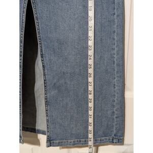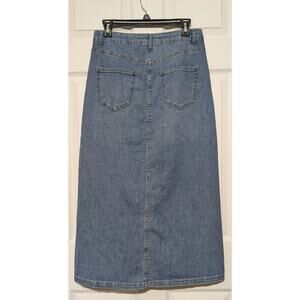 Stitch Star Denim Skirt Womens Small Midi Front Slit Pockets Stretch BCI Cotton