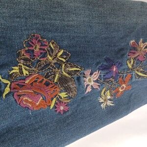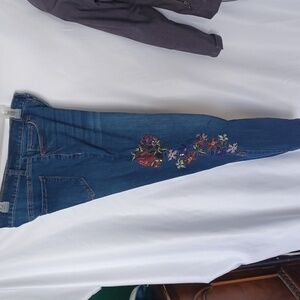 Stitch Star Jean embroidered flowers on both legs size 6, stretchy