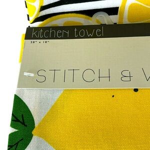 Stitch & Weft Kitchen Towel Set Lemon Print 100% Natural Cotton Yellow Black