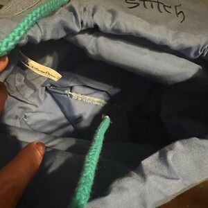 From Disney parks. A few marks, could use a wash. I as nervous to do so bc of the stiff ears and textured areas. One spot inside. So cute! Drawstring closure with magnetic flap.