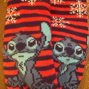 Disney’s Stitch fuzzy socks new with tags. Shoe size 4-10. Rubber grip on the bottom to prevent slipping. Perfect stocking stuffer for the Stitch lover in your life!