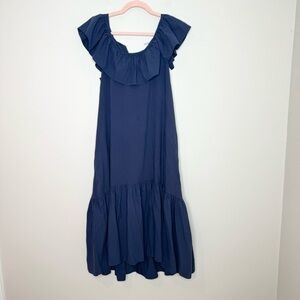 StitchDrop Marco Island Ruffle Midi Dress Blue Small