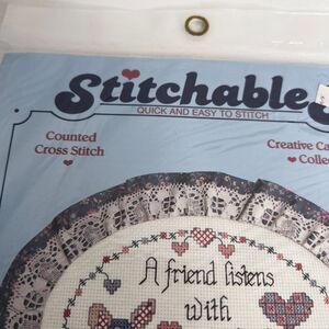 Stitchables NEW VTG Counted Cross Stitch Kit-A Friend Listens-Ruffled Oval
