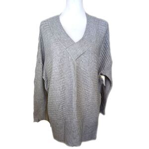 Stitchdrop NWT gray ribbed v-neck sweater, dolman sleeve, viscose blend S