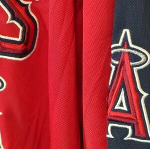 Stitches Angels red jersey short sleeve v-neck shirt. Size 2XL. Embroidered.