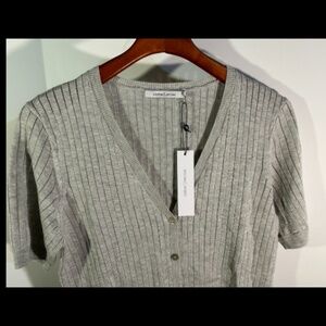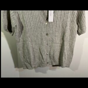 Stitches & Stripes Short Sleeve V-Neck Ribbed Button Front Knit Top Grey Size M - NWT