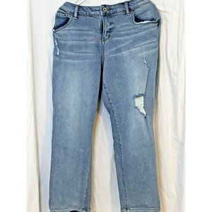 Stitch's Jeans Women's Boyfriend Medium Indigo, Factory Distressed Size 20