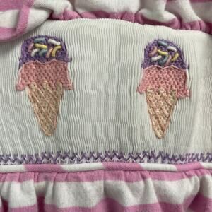 Stitchy Fish Girls 18 Mo Smocked Ice Cream Cone Romper Bubble Pink Stripe Cotton