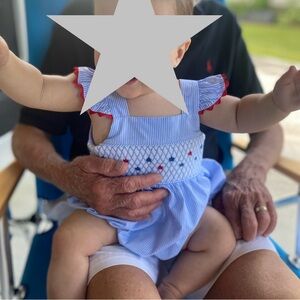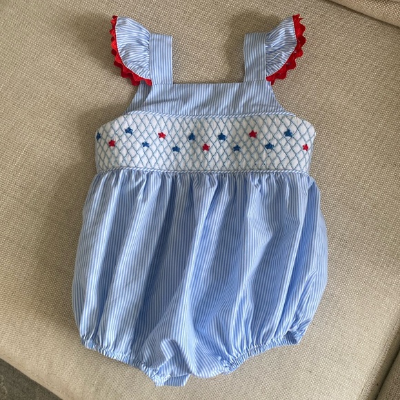 This has only been worn three times. No stains. Like new condition patriotic bubble. Size is 9 months