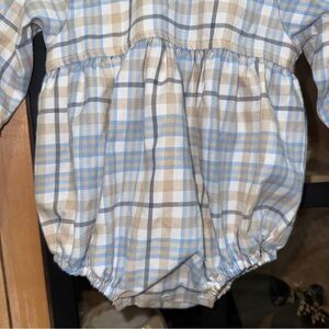 Stitchy Fish plaid bubble romper peter pan corduroy baby girl long sleeve ruffle