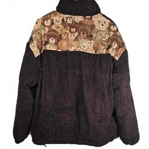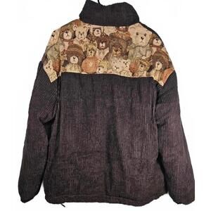 Stay warm and stylish with this charming corduroy jacket featuring a delightful bear-themed design. Perfect for chilly days, this jacket boasts: