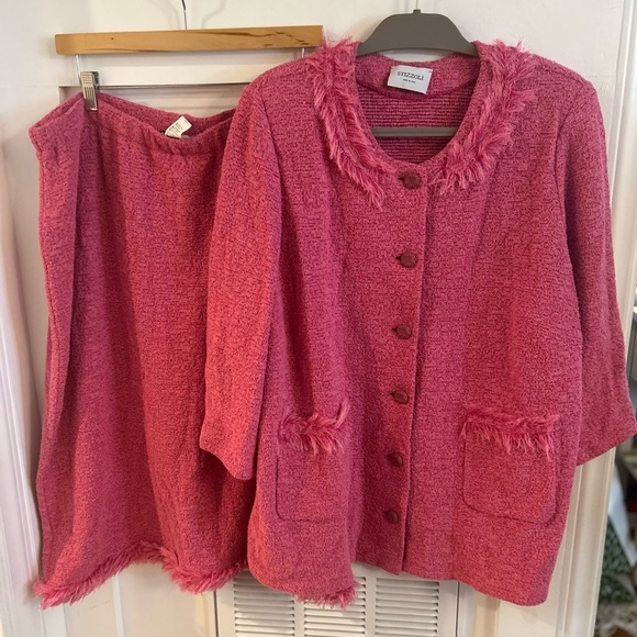 Stizzoli pink fringe feather Boucle Skirt Jacket suit set plus size 18-20