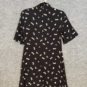 Stockholm Atelier Dress Womens 6 Black Butterfly Flared Sleeve Midi Boho Asian