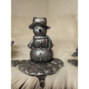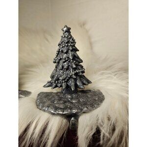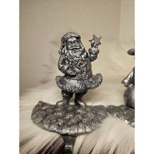 Stocking Holders Shelf Sitters Heavy Pewter Santa Snowman Christmas Tree Set of
