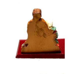 Vintage Christmas stocking hanger, there is a small white dot on front of platfrom. Not sure what that indicates because it shows on the box to be there intentionaly.. Box is in rough condition around all the edges from being packed away from 1940's in my great grandmothers trunk. The stature is not harmed.