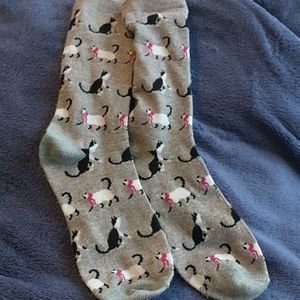 - adorable cats(w/scarves)socks gray w/ glittery pink threading giving a shimmer/metallic look NWOT
