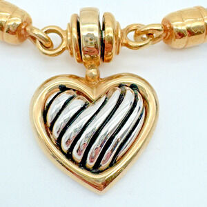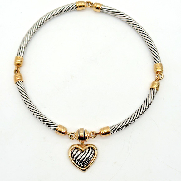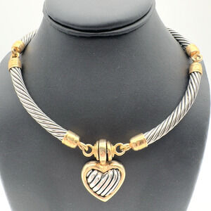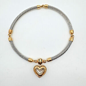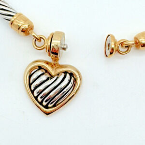 Stocko Heart Pendant Necklace Snap Clasp Two Tone Twisted Cable Choker 15"