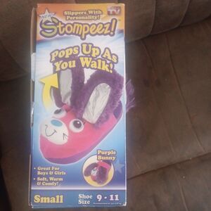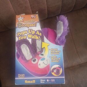 Stompeez Sz small 9-11 kids purple bunny slippers ears pop up when they walk New