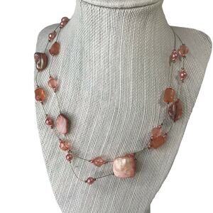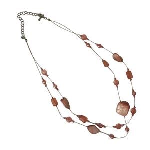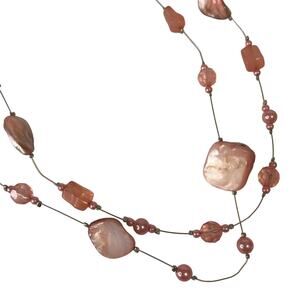 Stone Beaded Princess Necklace Multi-strand Vintage Coral Tone 20"