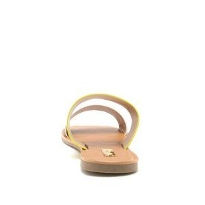 Add this retro inspired print to your spring wardrobe! This style features a yellow band zebra suede leatherette upper, it’s two band slide in construction makes it the perfect for your next festival-friendly look! Material: Man-made, suede leatherette Sole: Synthetic Measurement: Heel Height: 0.25" (approx.) Fitting: True to size