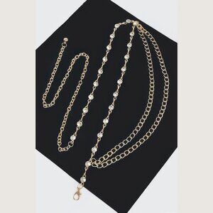 The Stone Chain Layered Belt is designed to elevate your outfit with a mix of sparkle and edge. Crafted from rhinestone and iron materials, it delivers a layered chain look that catches the light and enhances your waistline. Whether paired with a sleek dress or styled over a casual ensemble, this belt adds instant glamour. Measuring approximately 1" in width and 44.5" in length, it offers a flattering fit that adjusts with ease. It’s a versatile accessory perfect for nights out, events, or bold everyday looks.