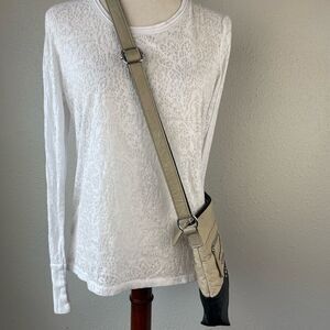 Great grab and go Crossbody style purse by Stone Co. it’s in excellent preowned condition and measures 10 inches and width, 10 inches in height, and 2.5 inches at the base.