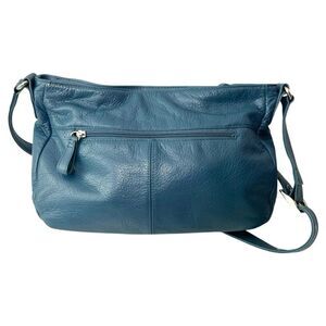 Stone & Co Pebbled Leather Teal Blue Hobo Shoulder Bag