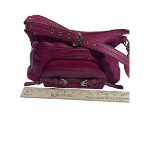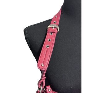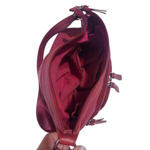 Stone & Company Red Genuine Pebbled Leather Shoulder Bag Handbag Buckled Adjustable Strap with Silver hardware