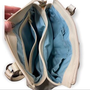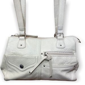 Stone & Co Womens Cream Leather Double Handles Classic Shoulder Handbag Purse