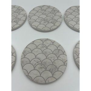 Six piece stone coaster set with gold tone holder. it is new in box. No Chips or Cracks.