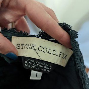 Elegant black maxi dress by Stone Cold Fox. Features delicate lace detailing. Perfect for evening wear.