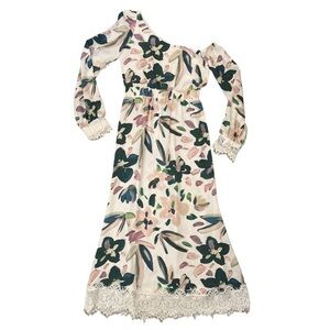 Stone Cold Fox Silk floral Off one Shoulder Maxi Dress with Lace detailing