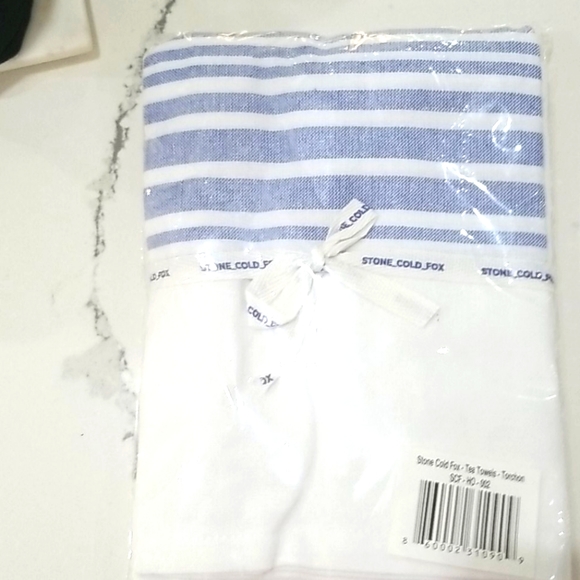 Set of 2 large kitchen towels. White with blue stripes. Absorbant.