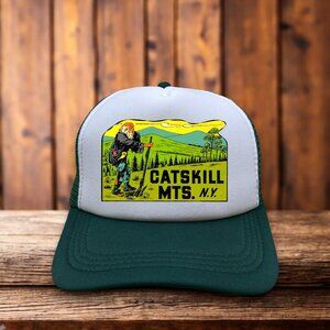 Features: Lightweight, medium crown, curved, foam front and mesh back, adjustable.