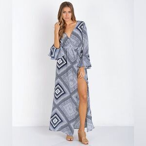 Stone Cold Fox Sunset Silk Wrap Robe Dress Alva Print M/L