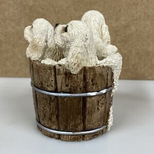 Stone Critters Spaniel Puppy Dogs Three in a Tub Shelf Sitter 1992 - Read