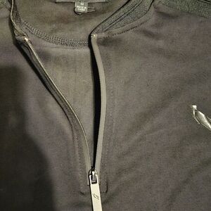This sleek black tee features a modern quarter-zip collar, offering a stylish twist on a classic short sleeve design. Crafted from a comfortable cotton-blend, it provides a minimalist look perfect for any casual occasion.