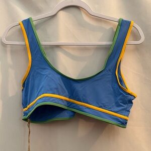 This Stone Fox Dahlia Bikini Swim Top is brand new and has the original tags attached. The color is called Apple Mint Tranquil Color Block - it is mostly a nice shade of blue with yellow and green trim/color block. This is designed for dynamic women for ultimate support. Super cute!