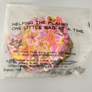 bikini top, floral swimwear, retro style, recycled fabric, eco-friendly swim, pink bikini, orange bikini, XS swim top, Rip Curl bikini, retro floral, women's swim top, bright swimwear, adjustable bikini