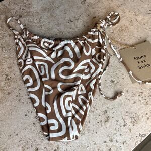 Stone Fox Swim Rawhide Swirl Brown White Cheeky Thong XL Bikini Bottom NWT