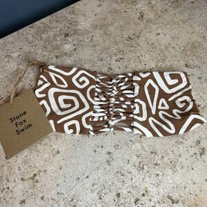 Stone Fox Swim Rawhide Swirl Brown White XS Bandeau Bikini Resort Wear Top NWT