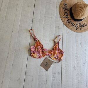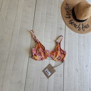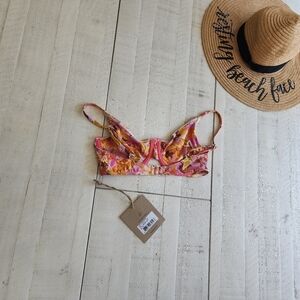 Stone Fox Swim “Retro Pop” Floral Bikini Top - Pink, Orange, Yellow